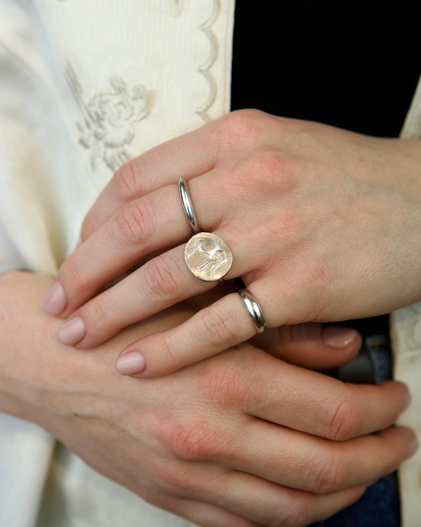 Χειροποίητο δαχτυλίδι από χυτό ασήμι 925°, επιροδιωμένο