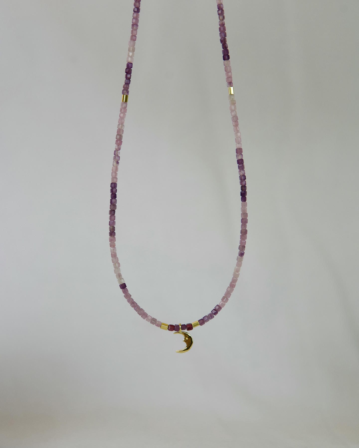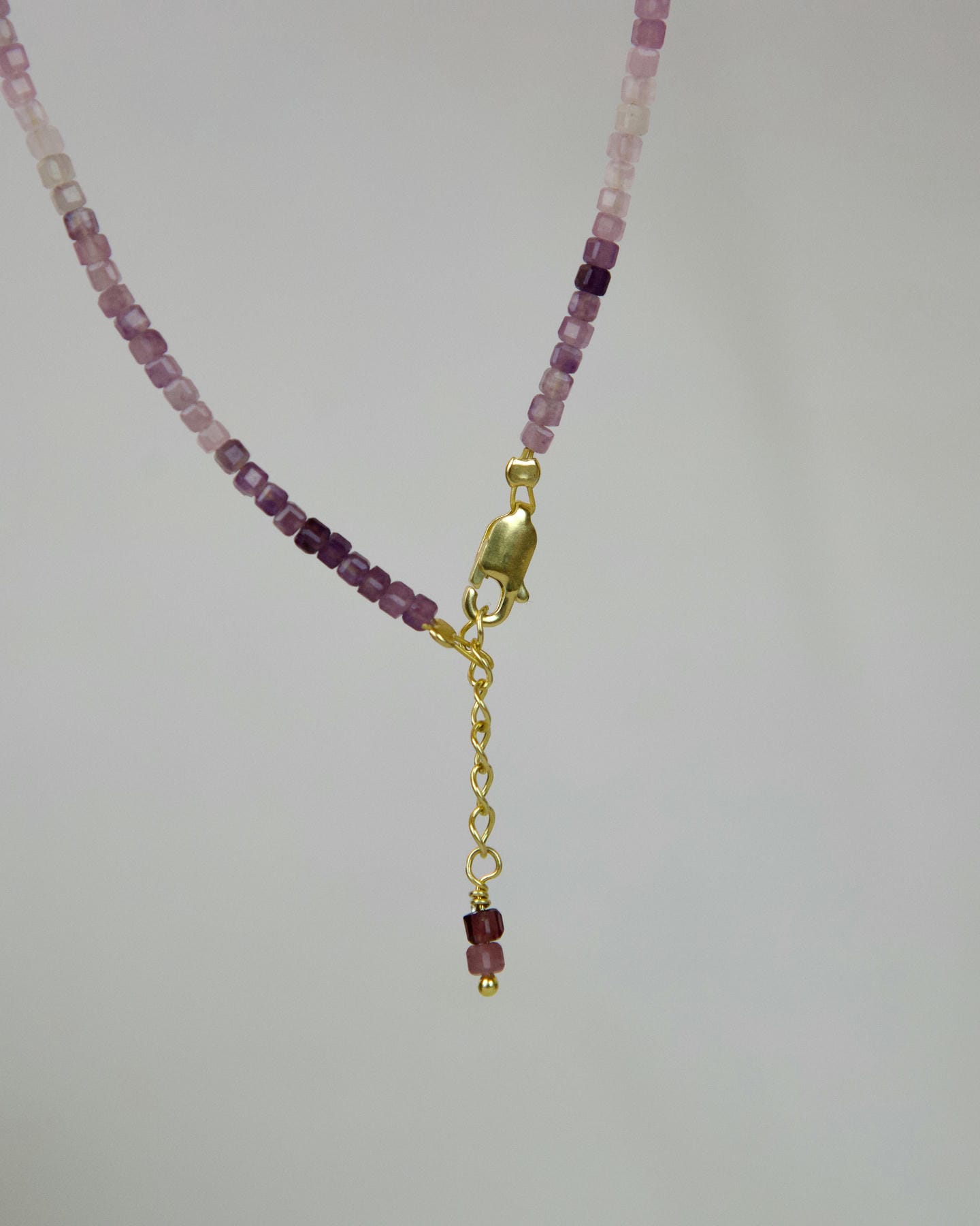 Χειροποίητο κολιέ από ημιπολύτιμη πέτρα αμέθυστου, με στοιχεία και κούμπωμα από επιχρυσωμένο ασήμι 925°, μήκους 40cm και προέκταση 2cm