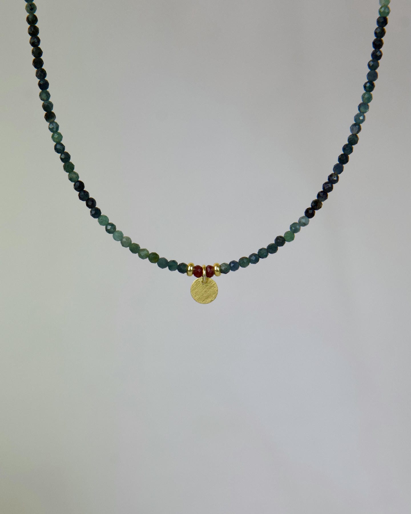 Χειροποίητο κολιέ από ημιπολύτιμη πέτρα τουρμαλίνης, με στοιχεία και κούμπωμα από επιχρυσωμένο ασήμι 925°, μήκους 40cm και προέκταση 2cm