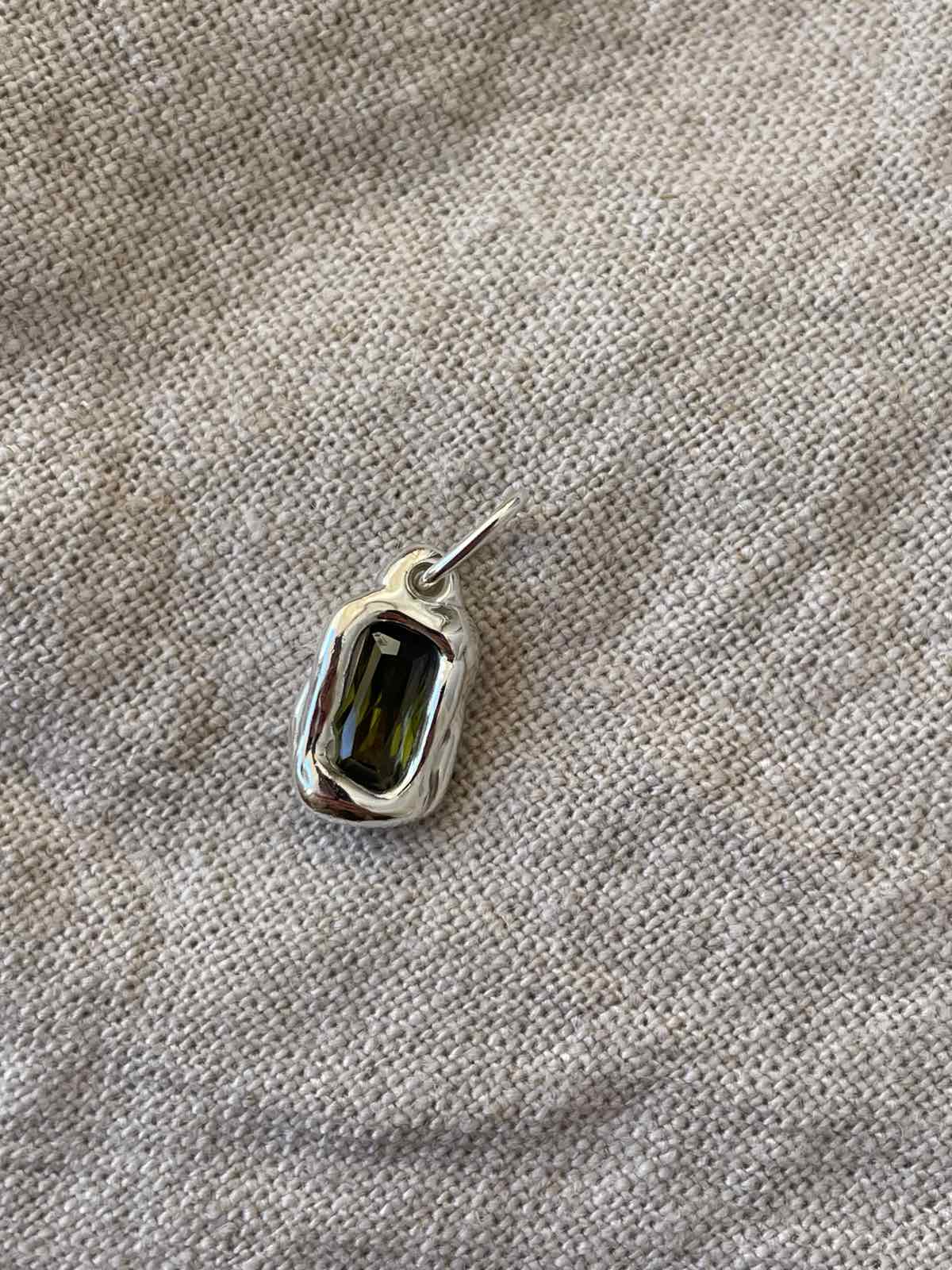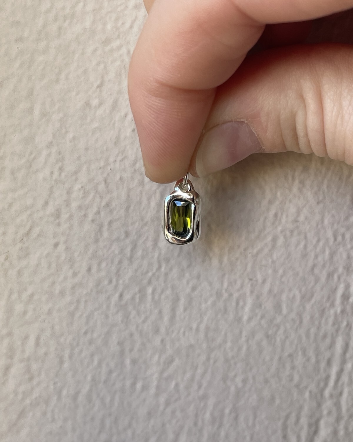 Χειροποιήτο μοτίφ με πέτρα πράσινο λαδί ζιρκόν από ασήμι 925° επιροδιωμένο