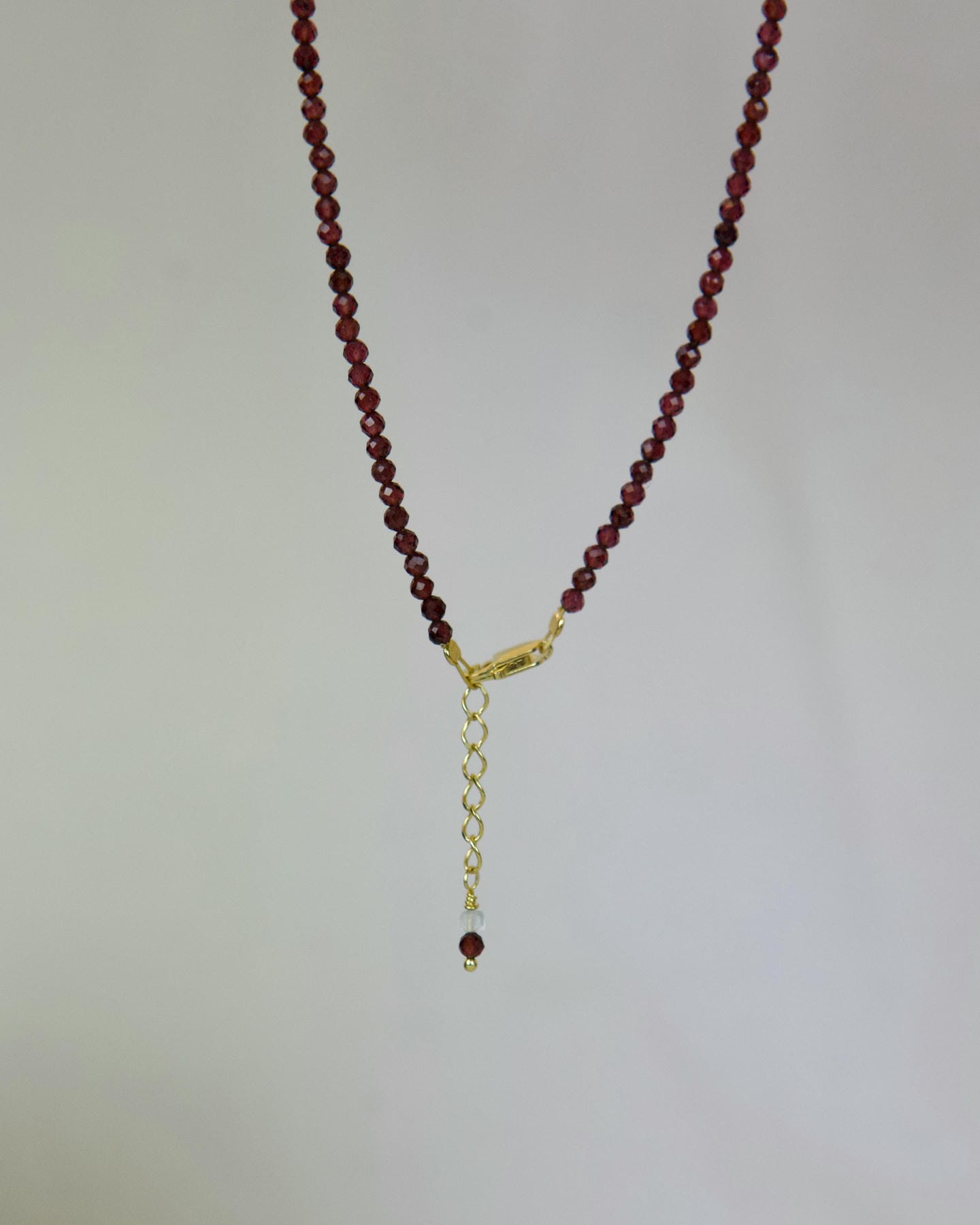Χειροποίητο κολιέ από ημιπολύτιμη πέτρα γρανάτη, με στοιχεία και κούμπωμα από επιχρυσωμένο ασήμι 925°, μήκους 40cm και προέκταση 2cm