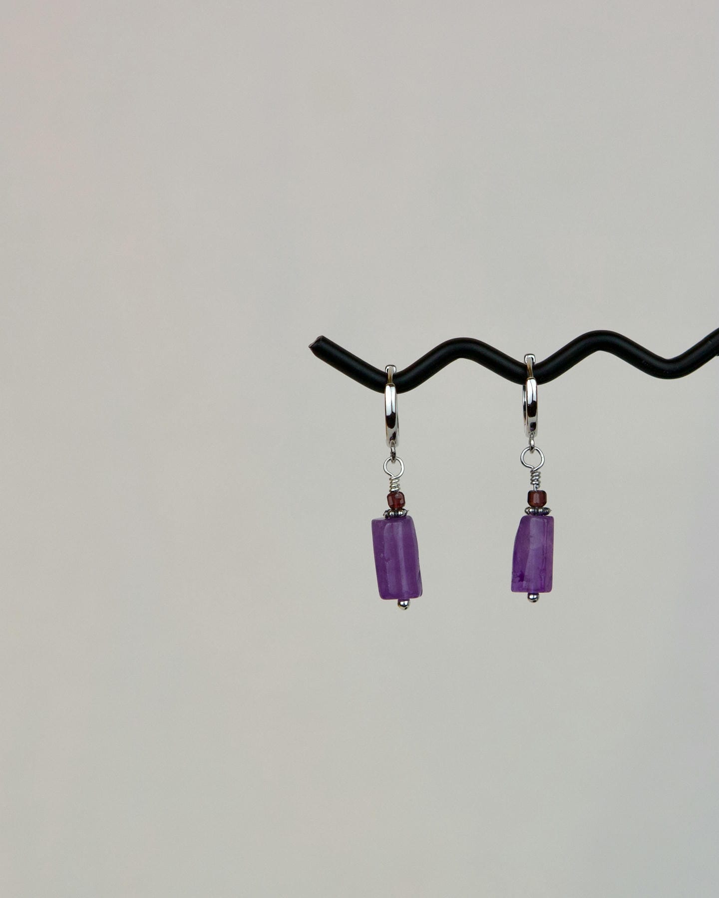 Χειροποίητα σκουλαρίκια από επιροδιωμένο ασήμι 925°, αμέθυστο και κόκκινο αχάτη
