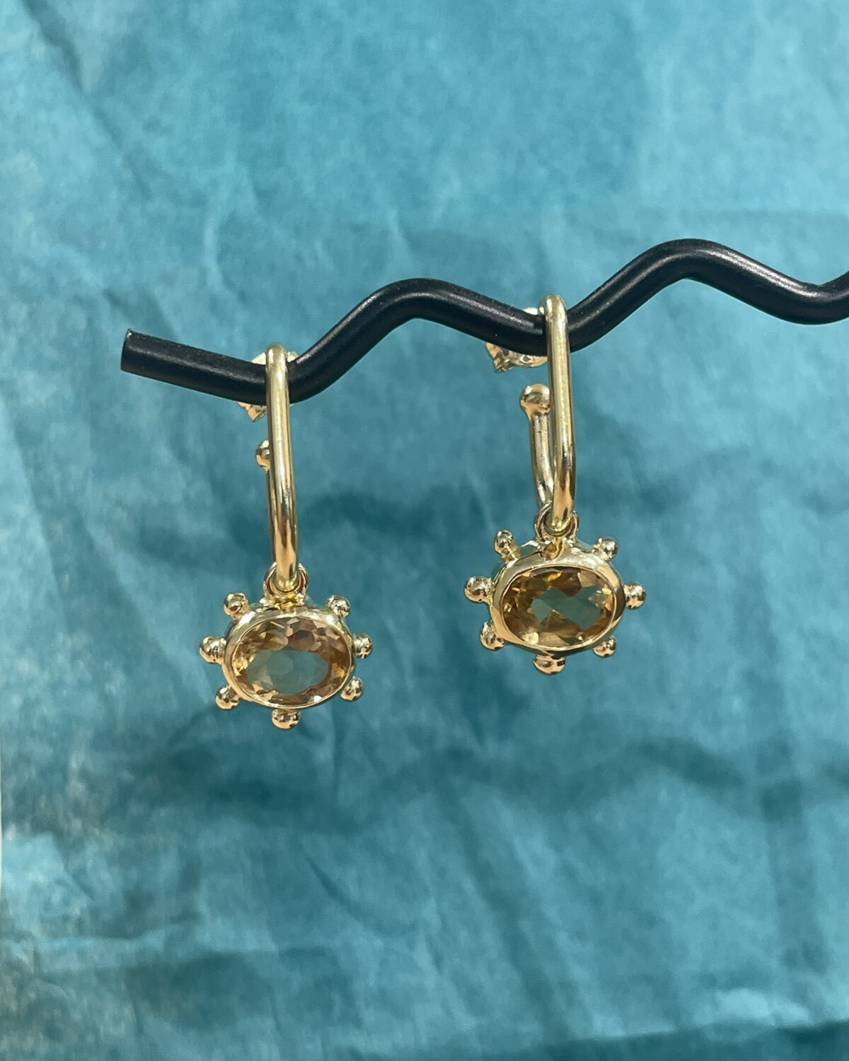 Χειροποίητο σκουλαρίκι από ασήμι 925°, επιχρυσωμένο, με πέτρα citrine
