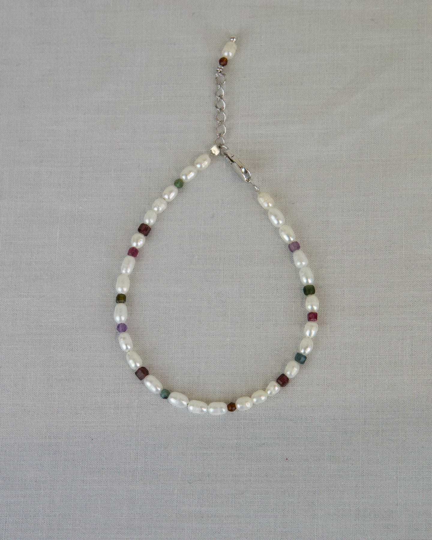 Βραχιόλι από ασήμι 925°, επιροδιωμένο, μαργαριτάρια και ημιπολύτιμες πέτρες