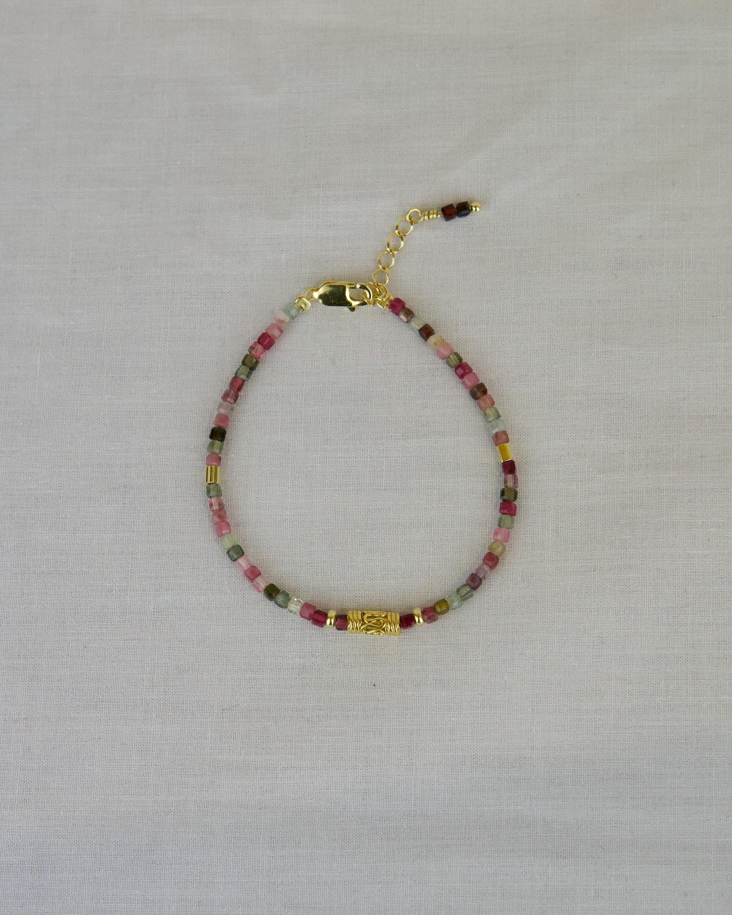 Χειροποίητο βραχιόλι από watermelon τουρμαλίνη και στοιχεία από επιχρυσωμένο ασήμι 925°