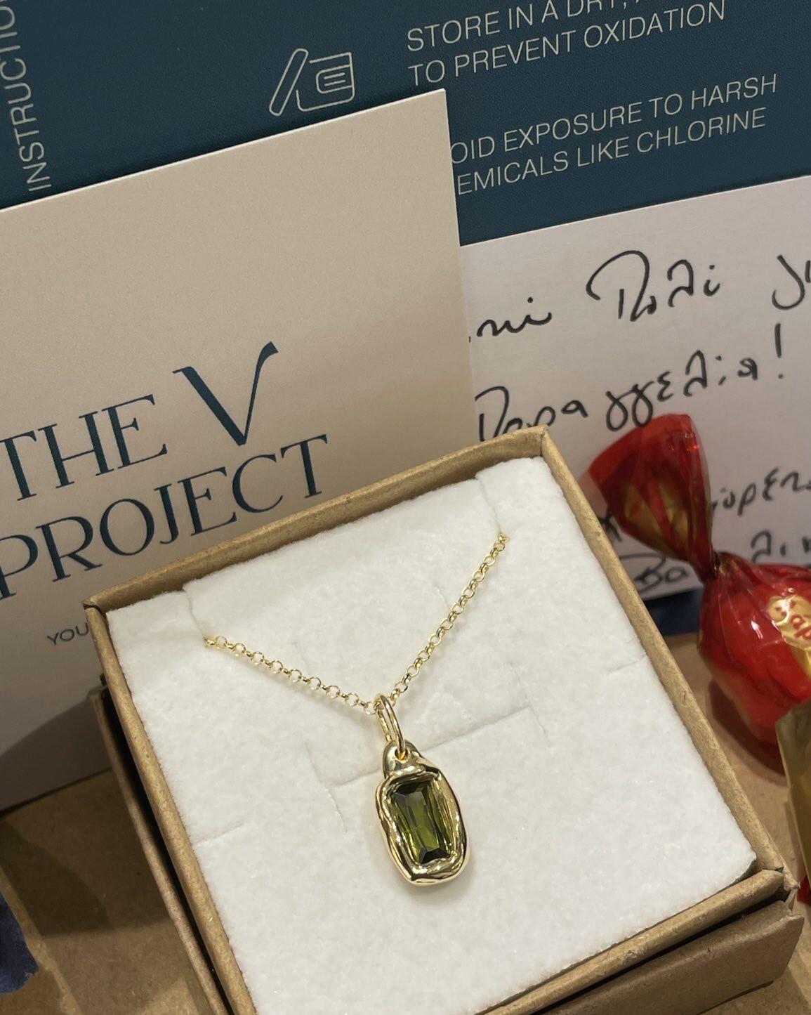 Χειροποιήτο μοτίφ με πέτρα πράσινο λαδί ζιρκόν από ασήμι 925° επιχρυσωμένο