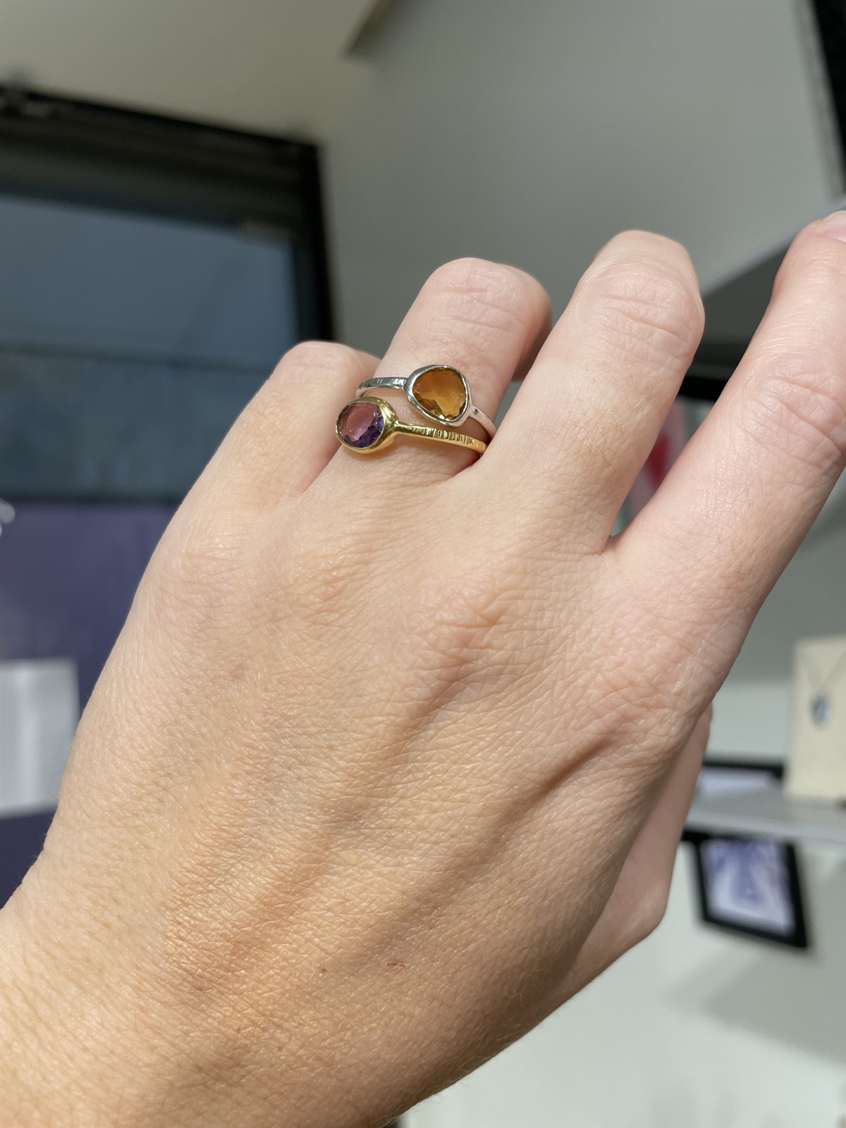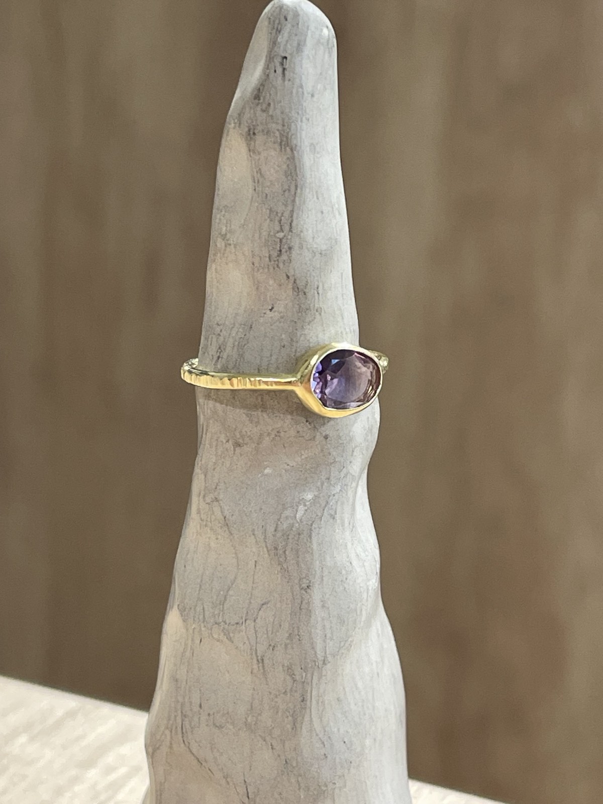 Χειροποίητο δαχτυλίδι από ασήμι 925°, επιχρυσωμένο, και πολύτιμη πέτρα αμέθυστο