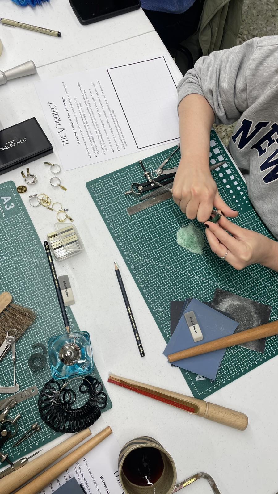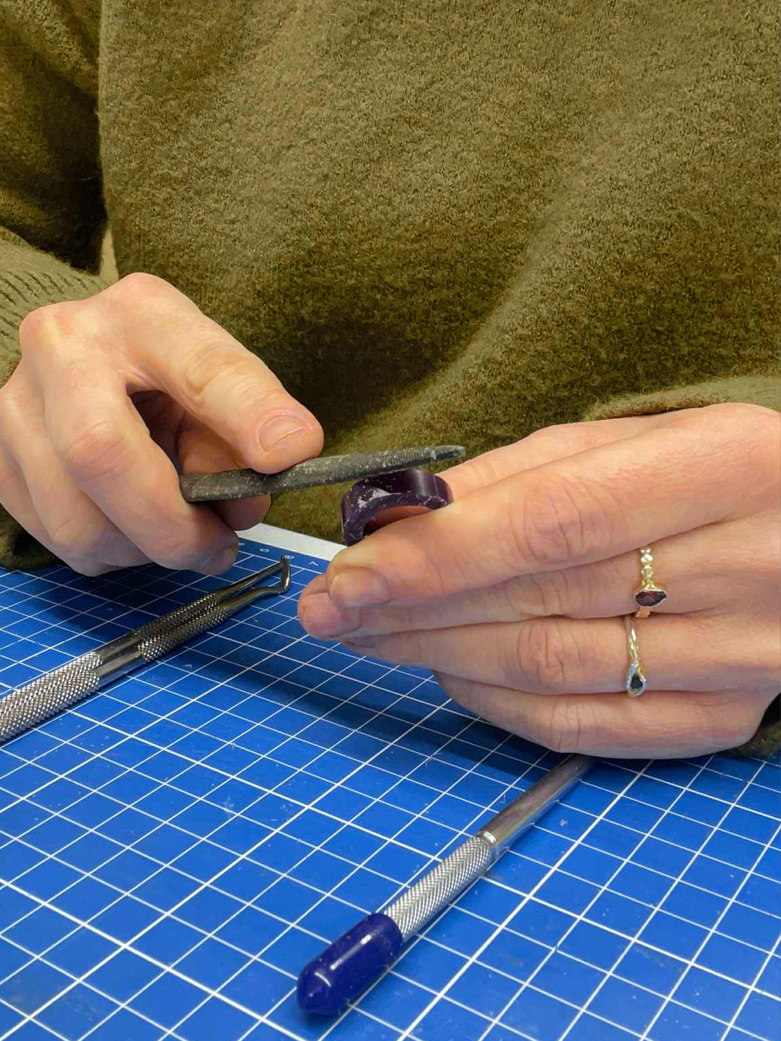 Στο workshop Φτιάξε το δικό σου κόσμημα θα μάθετε να δημιουργείτε το δικό σας δαχτυλίδι ή μοτίφ, εξερευνώντας παράλληλα τις βασικές αρχές της μικρογλυπτικής σε σκληρό κερί αργυροχρυσοχοΐας. Δεν απαιτείται προηγούμενη εμπειρία. Στο τέλος του workshop, το σχέδιο σας θα χυτευτεί σε ασήμι 925°. Μόλις ολοκληρώσουμε τον καθαρισμό και το γυάλισμα του κοσμήματος σας, θα σας αποσταλεί εντός 2-3 εβδομάδων. (Ή μπορείτε να επιλέξετε την παραλαβή από το κατάστημα)