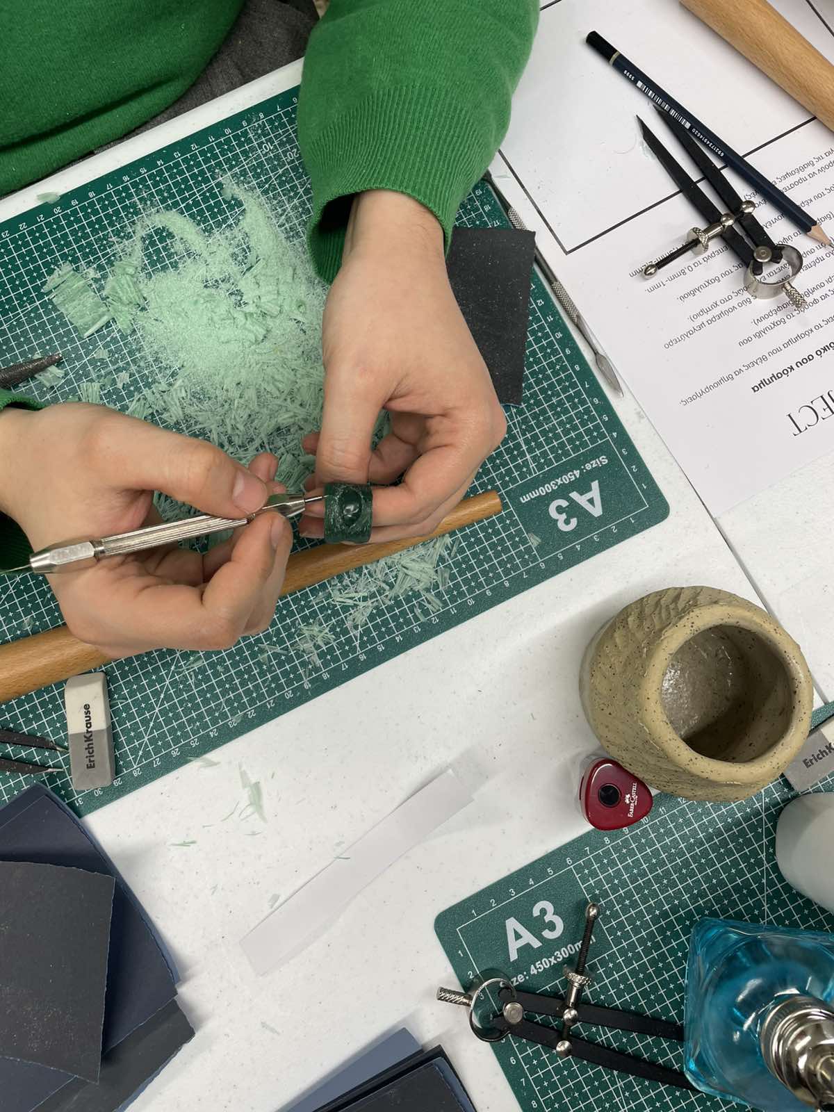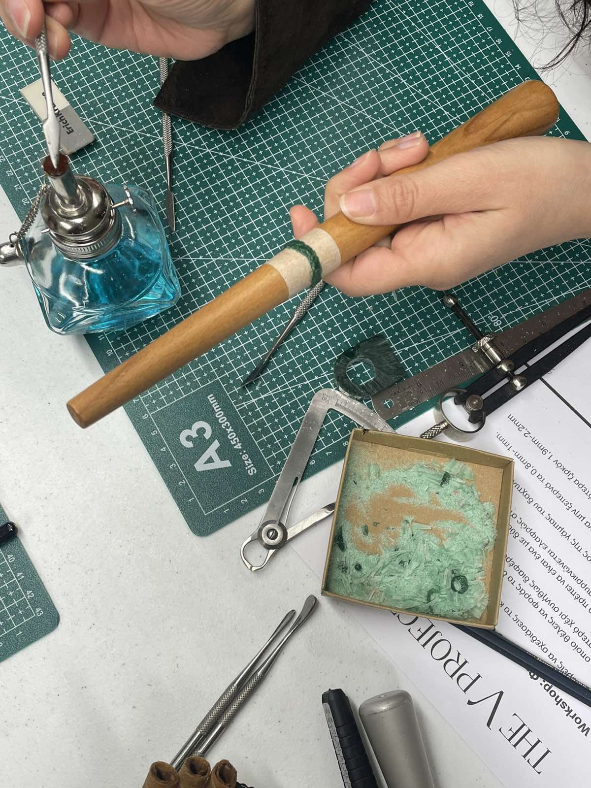Το workshop πραγματοποιείται σε μια φωτεινή και ζεστή ατμόσφαιρα με μέγιστο αριθμό 5 συμμετεχόντων. Όλα τα απαραίτητα εργαλεία και υλικά θα σας παρασχεθούν κατά τη διάρκεια του workshop για να φτιάξετε το δαχτυλίδι ή το μοτίφ σας από κερί.